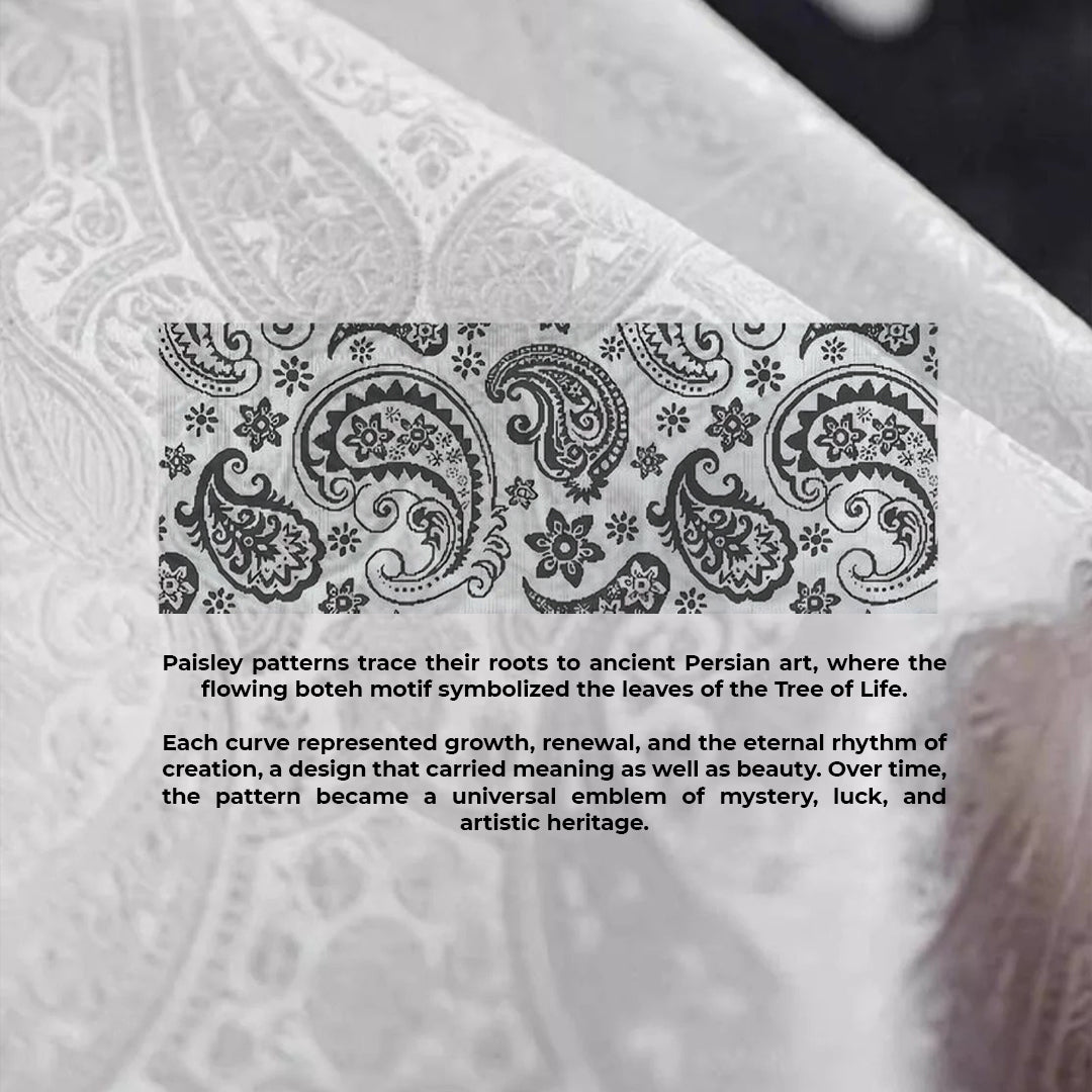 For centuries, artisans wove the boteh motif into royal silks to honor the eternal cycle of life and growth. Its curved lines were said to echo the branches and leaves of the Tree of Life — a reminder of continuity between the earth and the divine.
